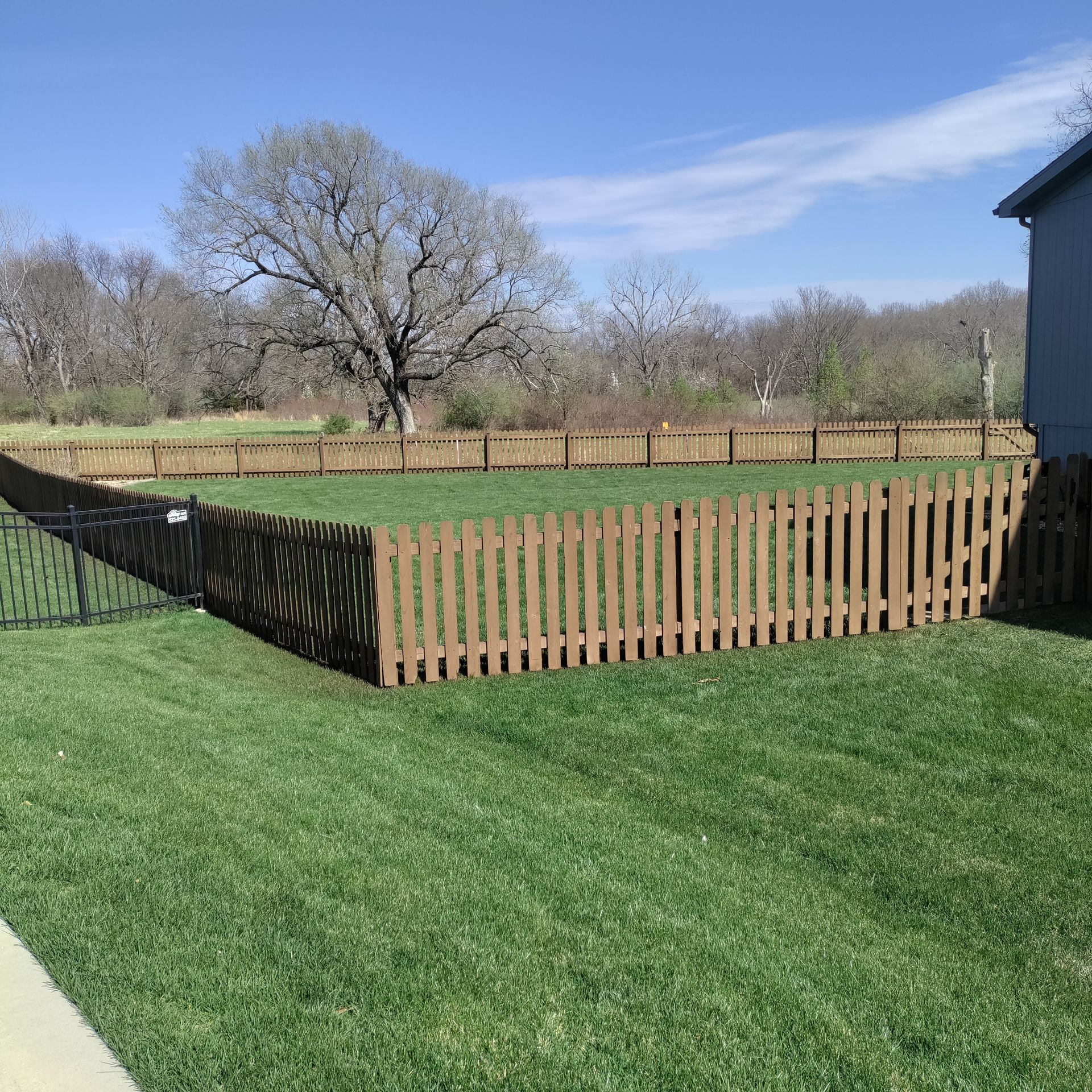 Staining now costs far less than replacing boards, or an entire fence later.